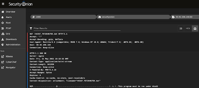 We did a quick analysis of this pcap on the latest version of Security Onion via so-import-pcap: